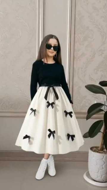 لباس دخترانه مدل دامن کرپ مازراتی و بالاتنه کشی مراکشی پاپیون ساتن سایز ۱۴سال