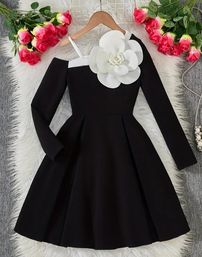 جنس کار کرپ مازراتی . سن دخترانه ۸تا ۱۶سال.دخترونه، شیک و پر از حس اعتمادبهنفس پیراهن سفید و مشکی که هر جا بپوشی، میدرخشی.