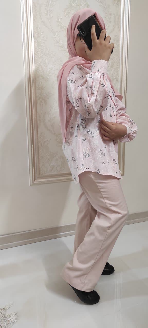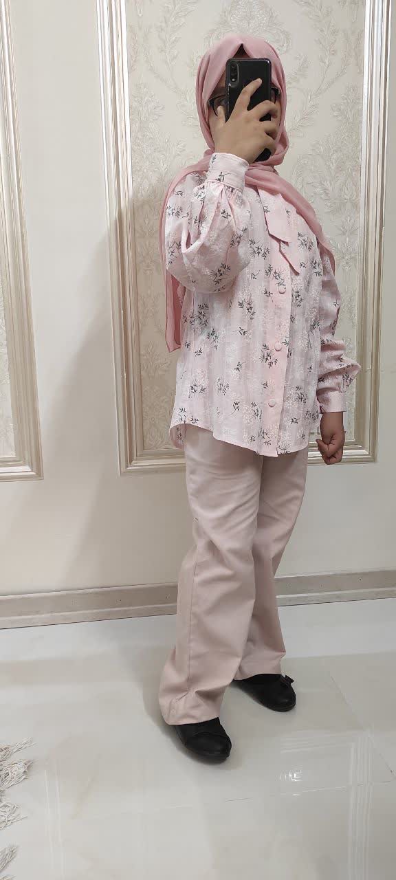 شومیز شلوار لنین گل گچی مخصوص دختران ۹تا ۱۶ سال